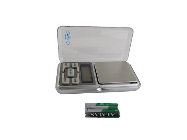 Báscula de bolsillo digital de 300 gr a 0.01 gr. En plástico ABS y con tapa transparente. Display LCD. Usa 2 pilas AAA. Mide en g., oz., lb., ct., gn.